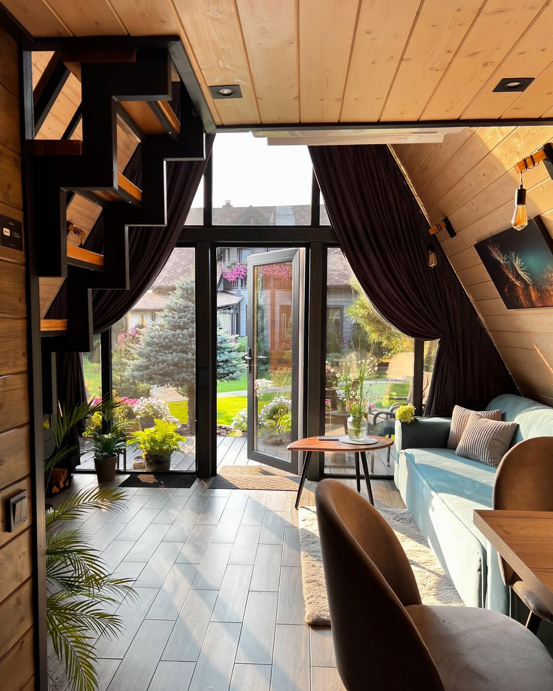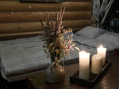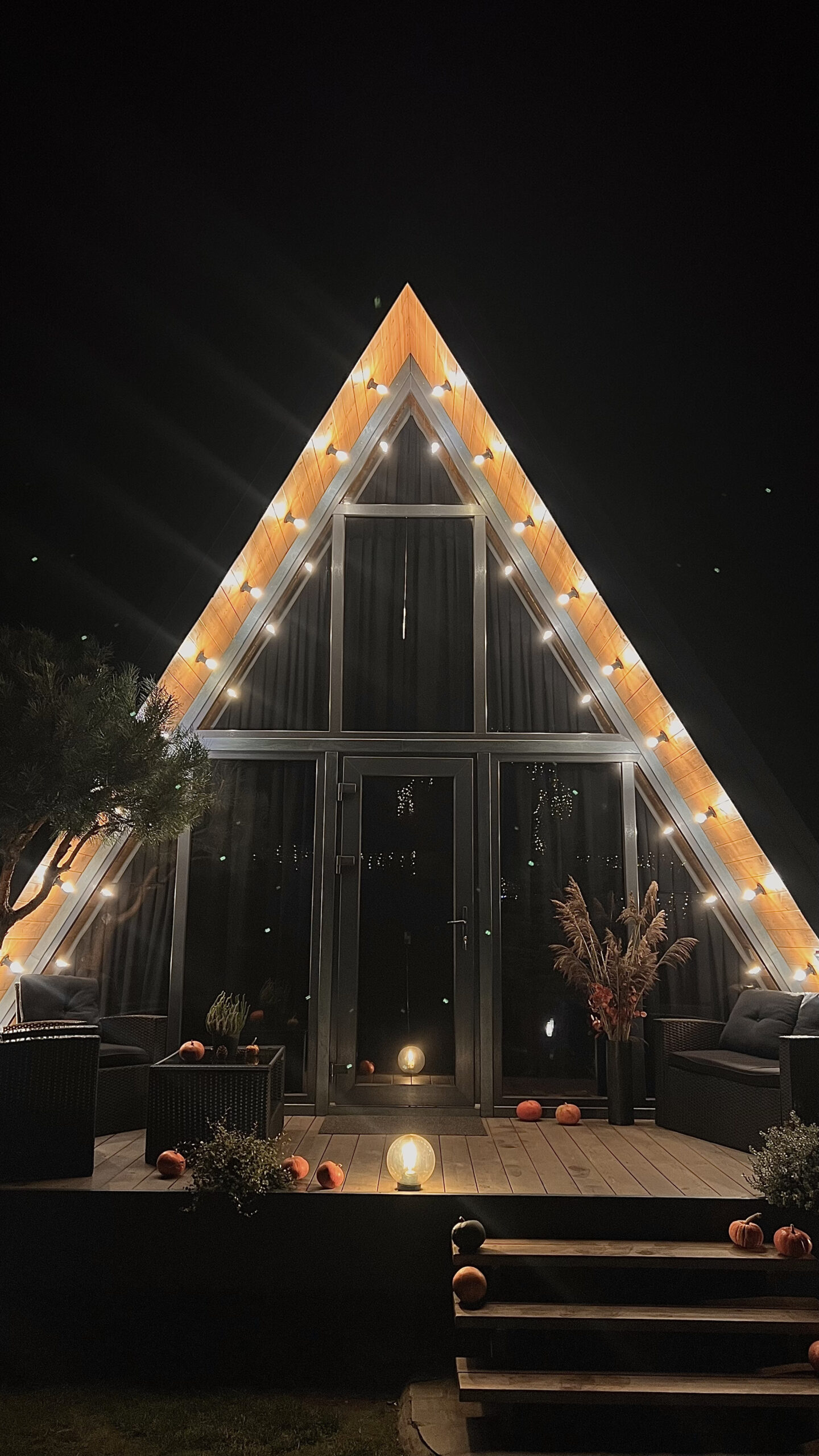 • семейный отдых • треугольный домик • баня на дровах с кухней и террасой • купель с горячей водой • зона барбекю • живописный пруд • детская площадка
